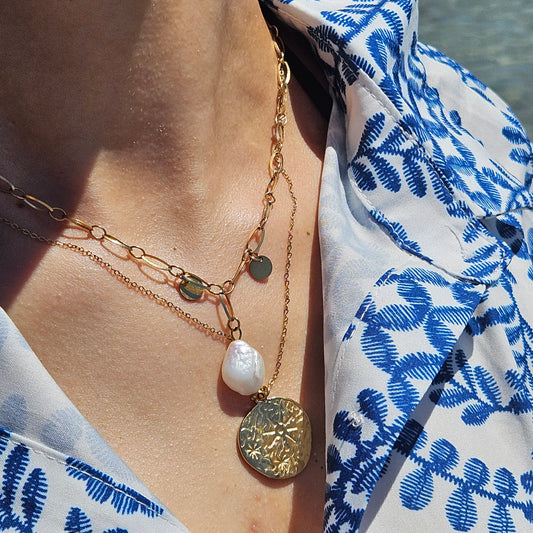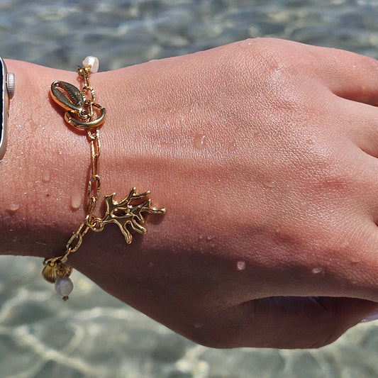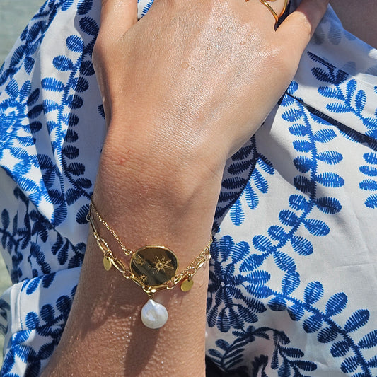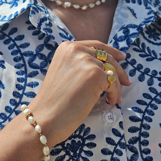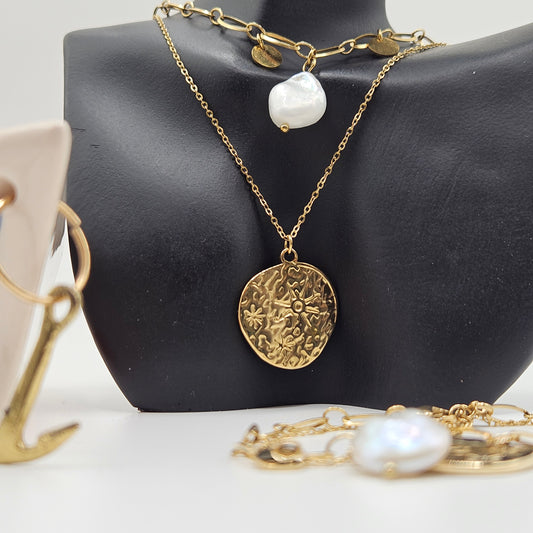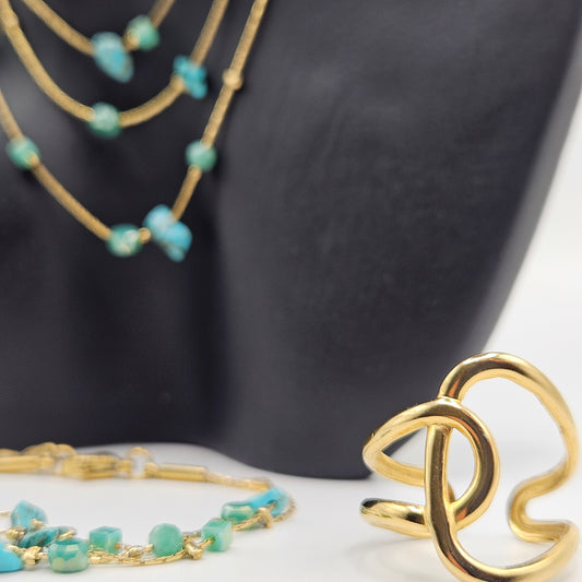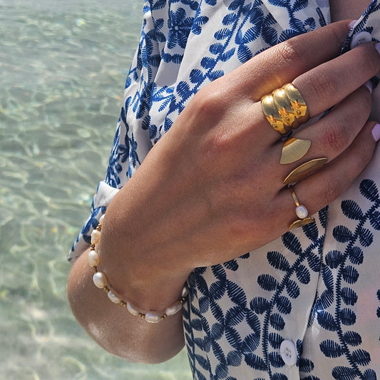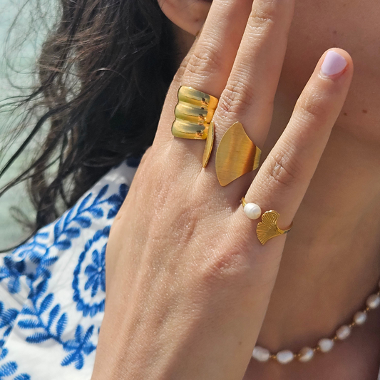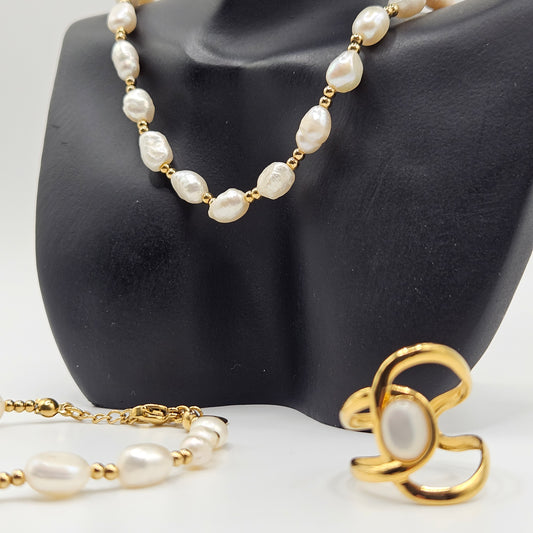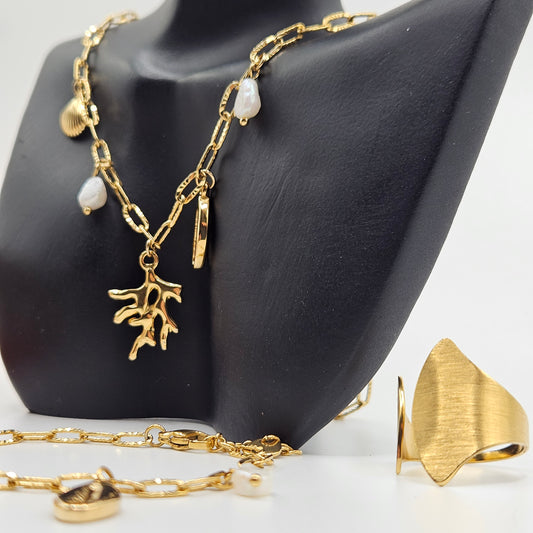 Calypso - Ensemble en acier Inoxydable doré (Collier, Boucles d'oreilles, Bracelet et Bague)